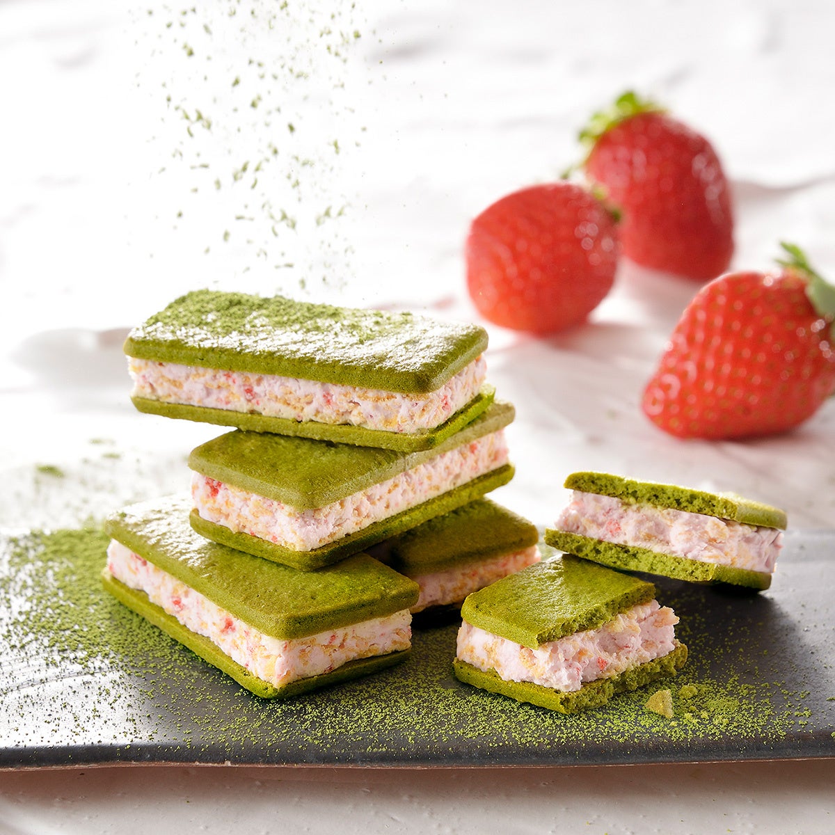 抹茶クッキーでいちごのホワイトチョコをサンド。