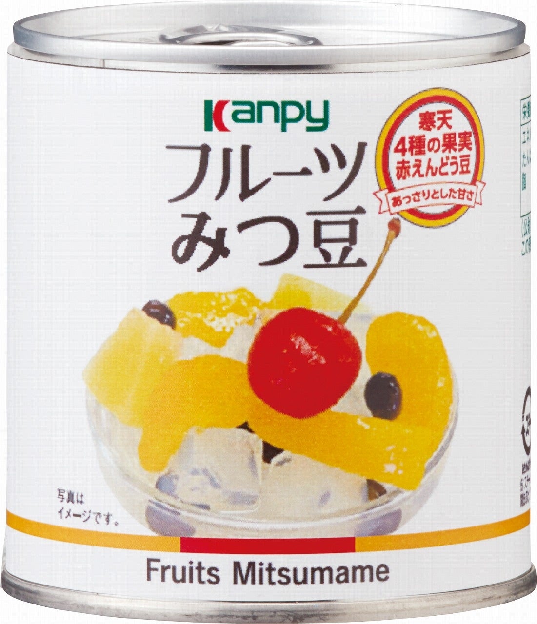 食感のよい寒天と赤えんどう豆、4種の果実(みかん、黄もも、パイン、さくらんぼ)をミックスしました。