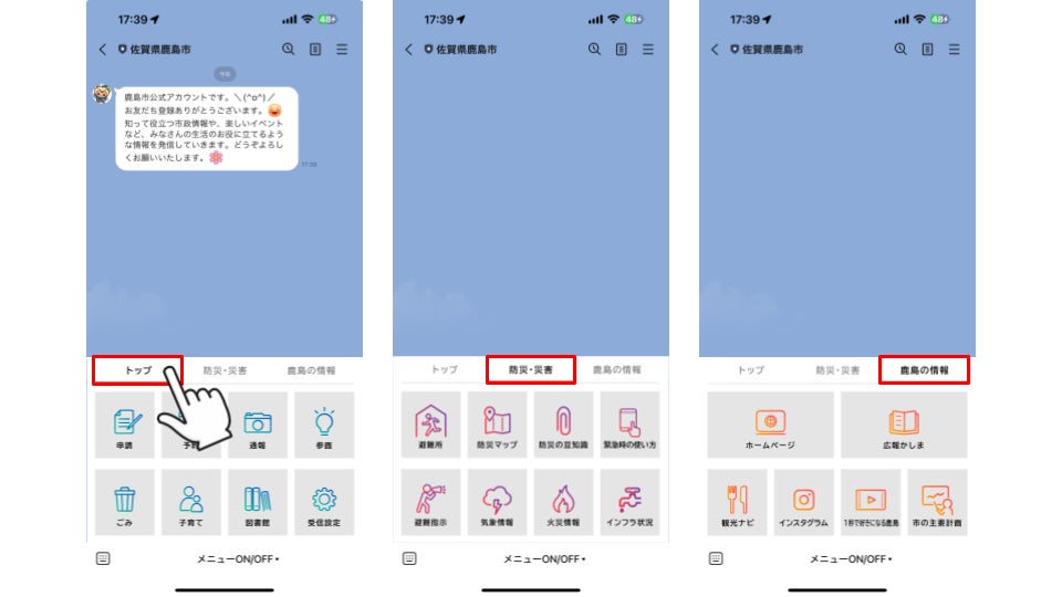 鹿島市のLINE公式アカウントでは、この他にも以下の機能が実装されます。