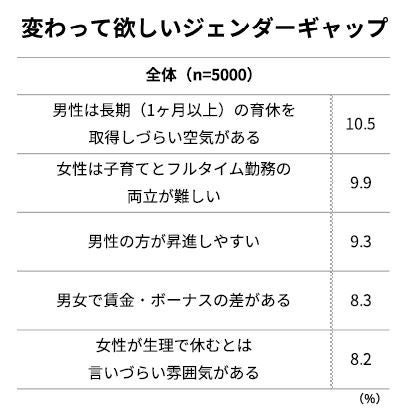 今回実施した調査からは、ジェンダーギャップに対する意識の実態や、ジェンダーギャップを感じた具体的な経験や職場の暗黙のルール、ジェンダーギャップが改善しない背景にあるさまざまな問題が浮き彫りとなりました。