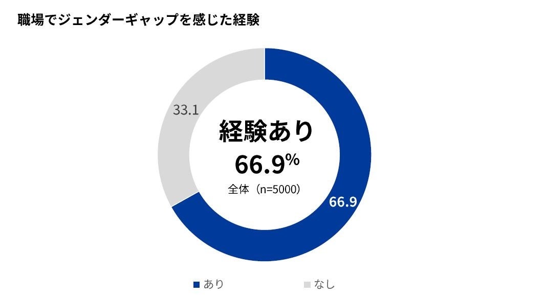 - 直近3年のうちに職場でジェンダーギャップを「感じたことがある」は66.9%に上る。