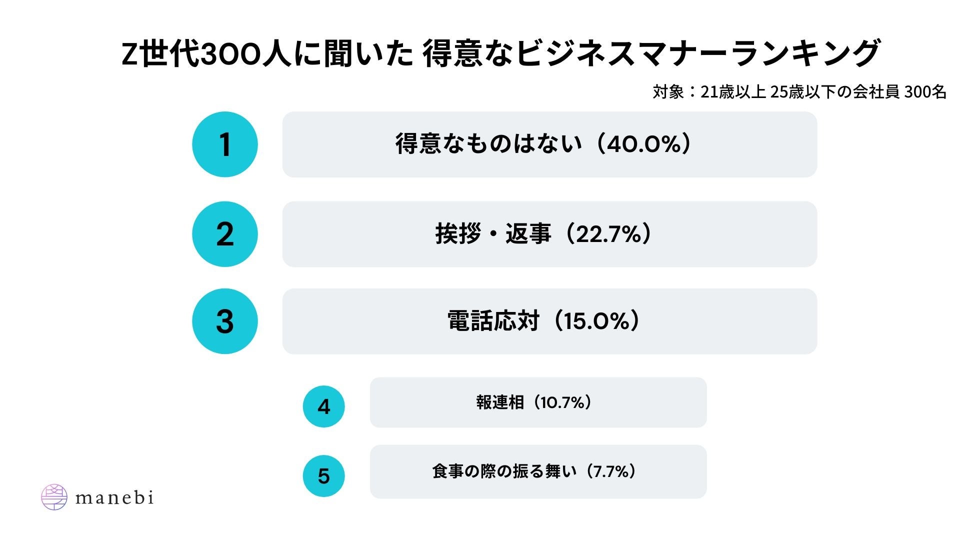 - Z世代の4割が「得意なビジネスマナーはない」と回答