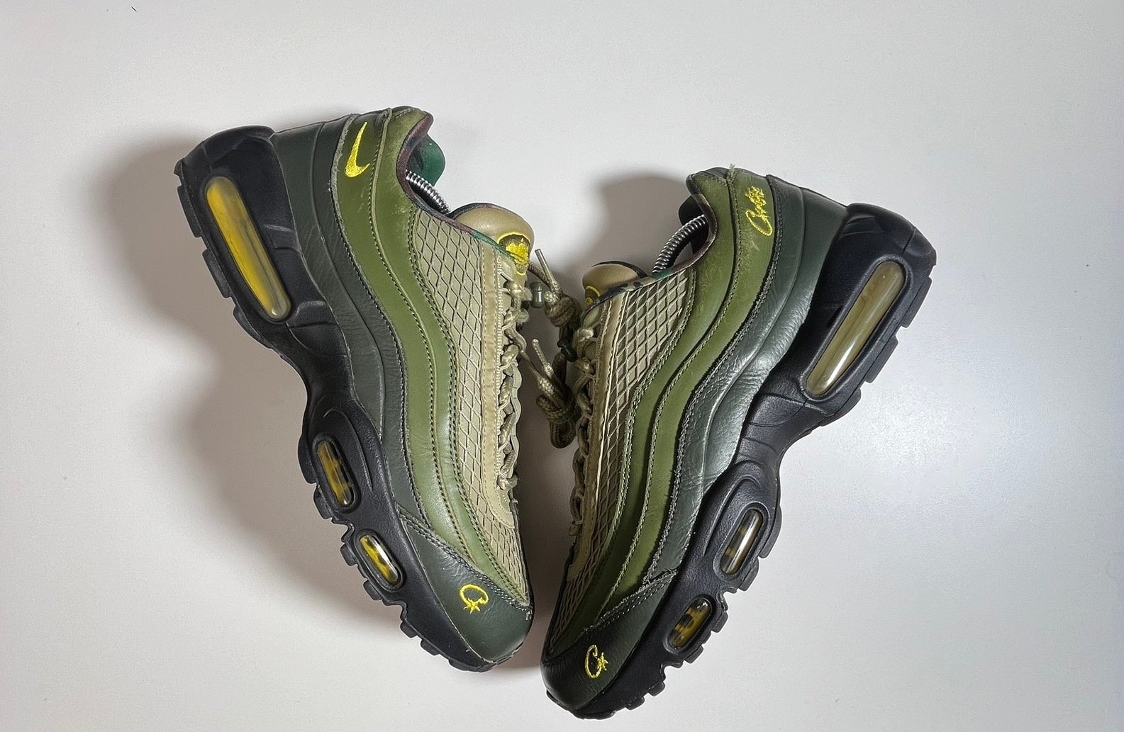 ロンドン発のストリートウェアブランド Corteiz と Nike がコラボレーションしたエアマックス95を、今回は日本では非常に珍しいアイテムとして出品。イギリスの限定店舗でのみ販売されたこのスニーカーは、希少性の高さから、スニーカーヘッズにとって必見の一品です。