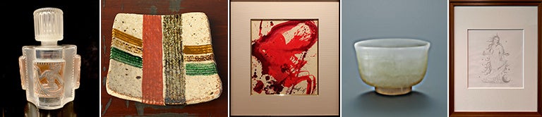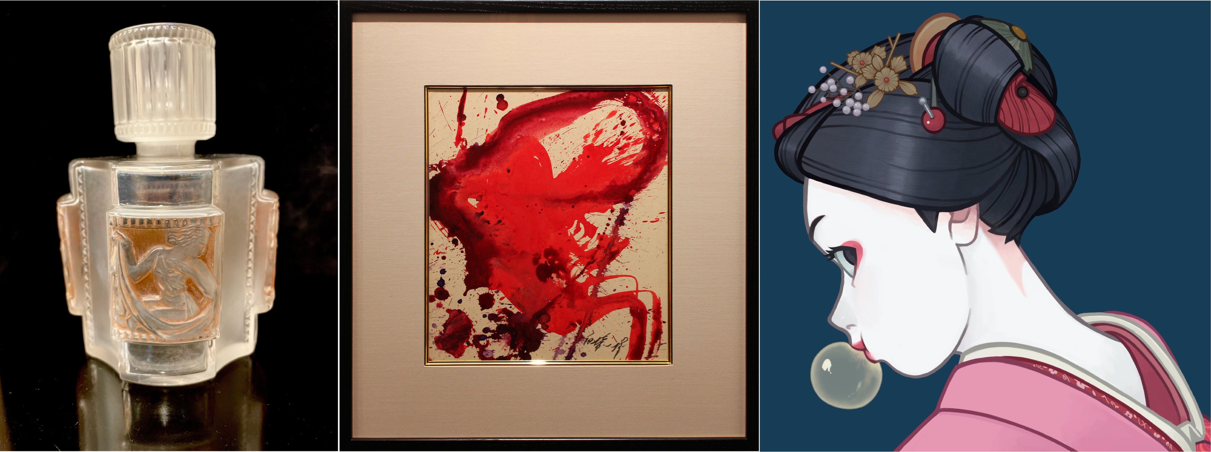 [写真左から] ルネ・ラリック「エレーヌ」、白髪 一雄「示現」、村田りょう「舞妓」