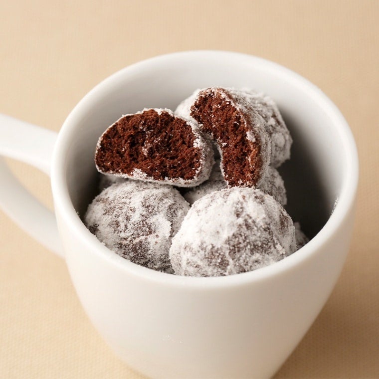パウダーシュガーの甘味とココアの苦味のバンランスが絶妙なサクほろ食感がたまらないスノーボールクッキー。