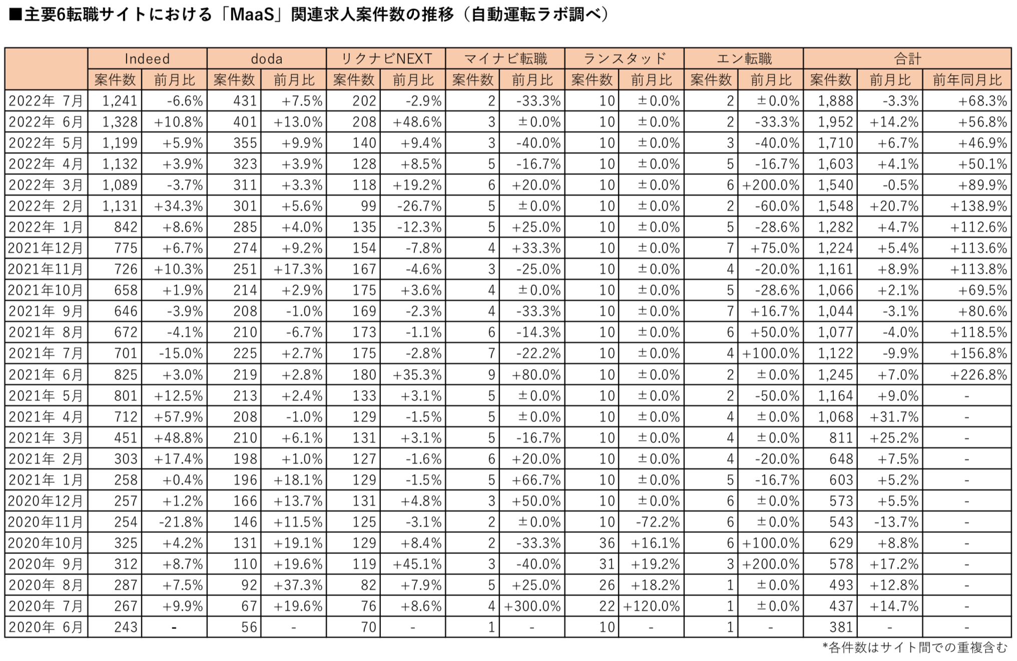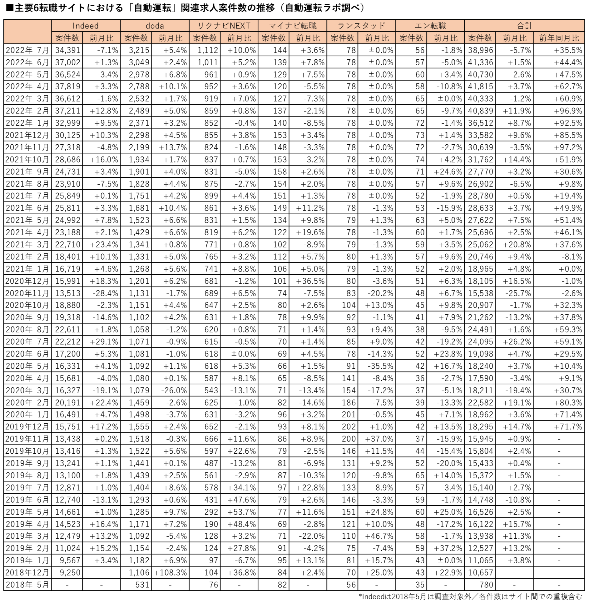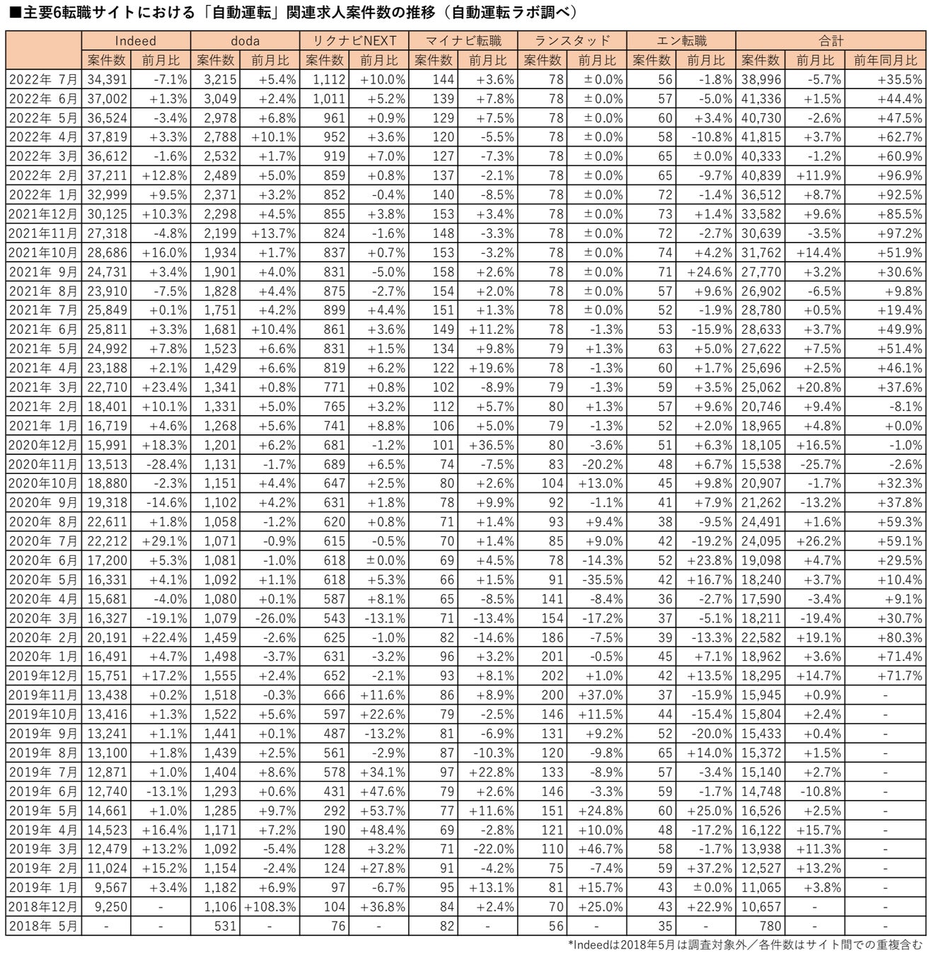 「自動運転」関連求人、前年比35.5%増の38,996件(2022年7月版調査)- 自動運転ラボ