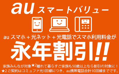 コミュファ光では、「初期費用0円キャンペーン」「オプション加入キャンペーン」、さらには「auスマートバリュー」「自宅セット割」など、様々なキャンペーンや割引を実施しています。
