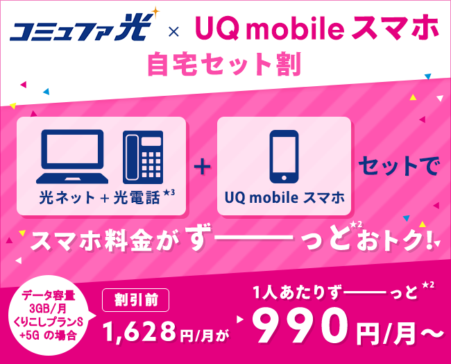 ※割引額はUQ mobileでご契約中のプランによって異なります。