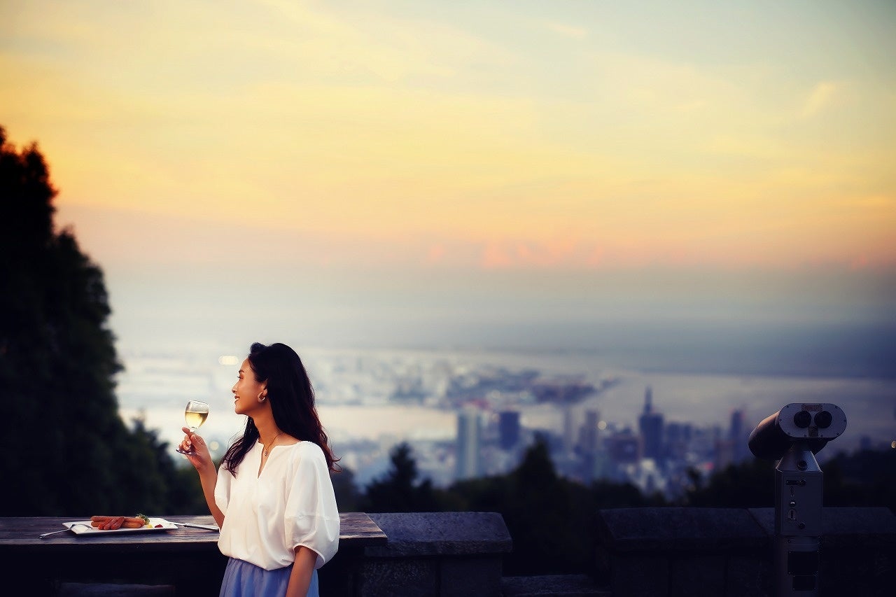 開放的な屋外空間で、昼は夏空の下で爽やかに。夜は「光の森」の幻想的なイルミネーションと「神戸の夜景」を楽しみながら、特別な夏の夜のひとときをお過ごしください