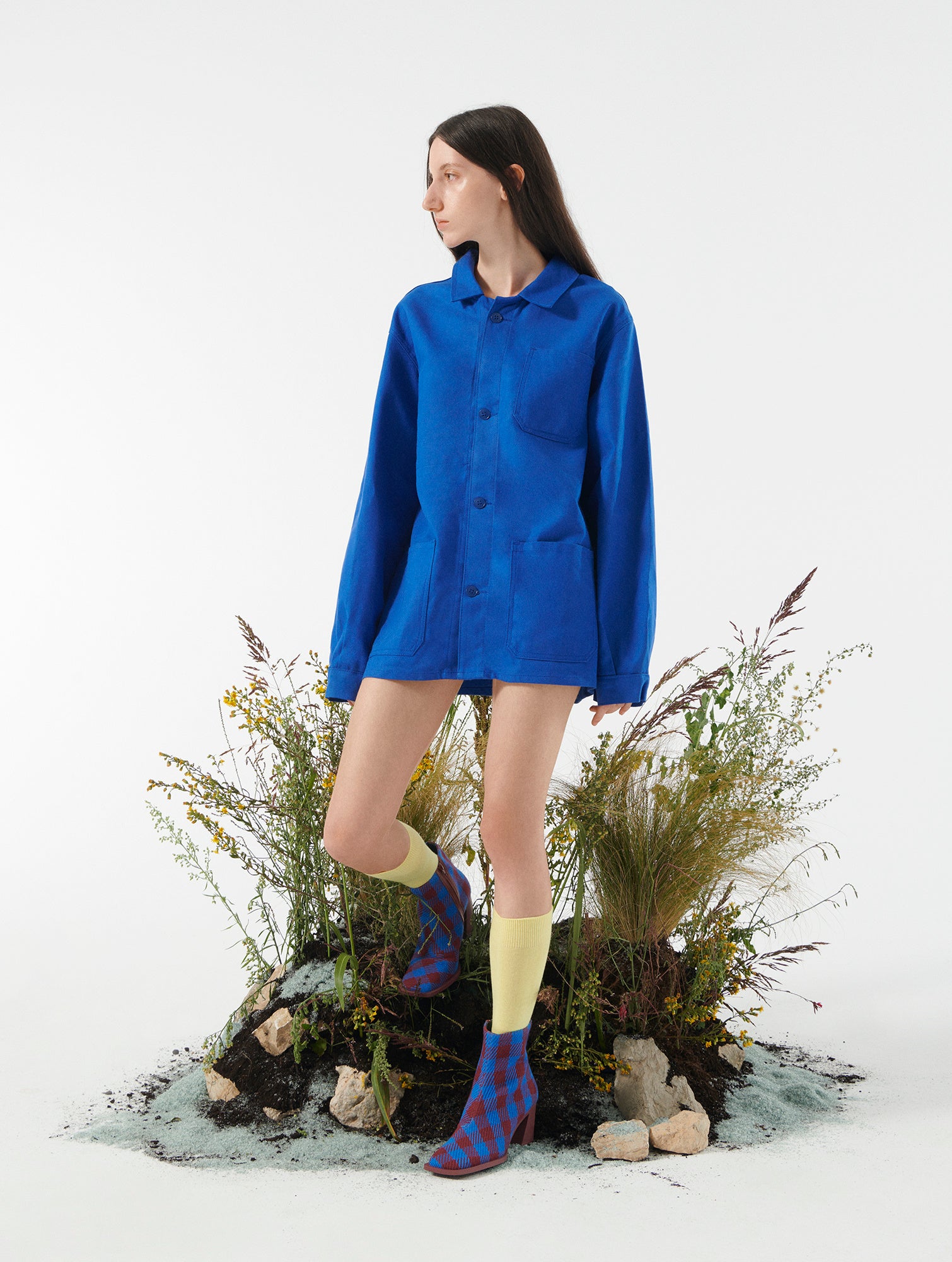 今季は、カロレらしいモードなシルエットのTストラップシューズと目を惹くギンガムチェックのイットブーツが登場。新作ブーツは、通気性の良いコットン(一部リサイクルコットン使用)のギンガムチェックを採用し、肌に優しいクロムフリーレザーとリサイクルPETのライニングを使用しています。安定感のあるヒールは長時間の着用にも適した快適さをお約束します。
