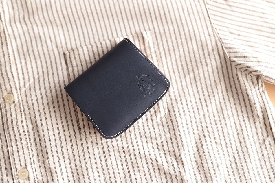 豊臣秀吉の甲冑を作った千年の歴史をほこる姫路レザーを使用。日本の空と海の青さをイメージしたミニ財布が登場。