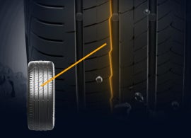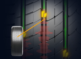 トレッド縦溝内に配置された小さな突起構造により、縦溝から発生するノイズの音圧を制御。空気の流れを最適化することで、走行時に発生する特定周波数帯のノイズを効果的に抑制します