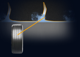タイヤが路面と接触する際の衝撃や振動を抑えるため、柔軟に接地するトレッド構造を採用。さらに、特殊な高分子ポリマーネットワークを用いたコンパウンドにより、路面から伝わる振動を効果的に吸収します。これにより、優れた乗り心地と安定したハンドリング性能を両立しています。