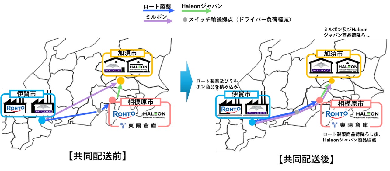 Haleonジャパン株式会社(本社:東京都港区、代表取締役社長:野上 麻理、以下、当社)は、ロート製薬株式会社(本社:大阪府大阪市、代表取締役社長:瀬木 英俊、以下、ロート製薬)、株式会社ミルボン(本社:東京都中央区、代表取締役社長:坂下 秀憲、以下、ミルボン)と、持続可能なサプライチェーン構築を目的とした物流効率化の取り組みとして、東陽倉庫株式会社(本社:愛知県名古屋市、代表取締役社長:黒田 城児、以下、東陽倉庫)の協力のもと、3社における共同配送を2025年8月より開始しました。