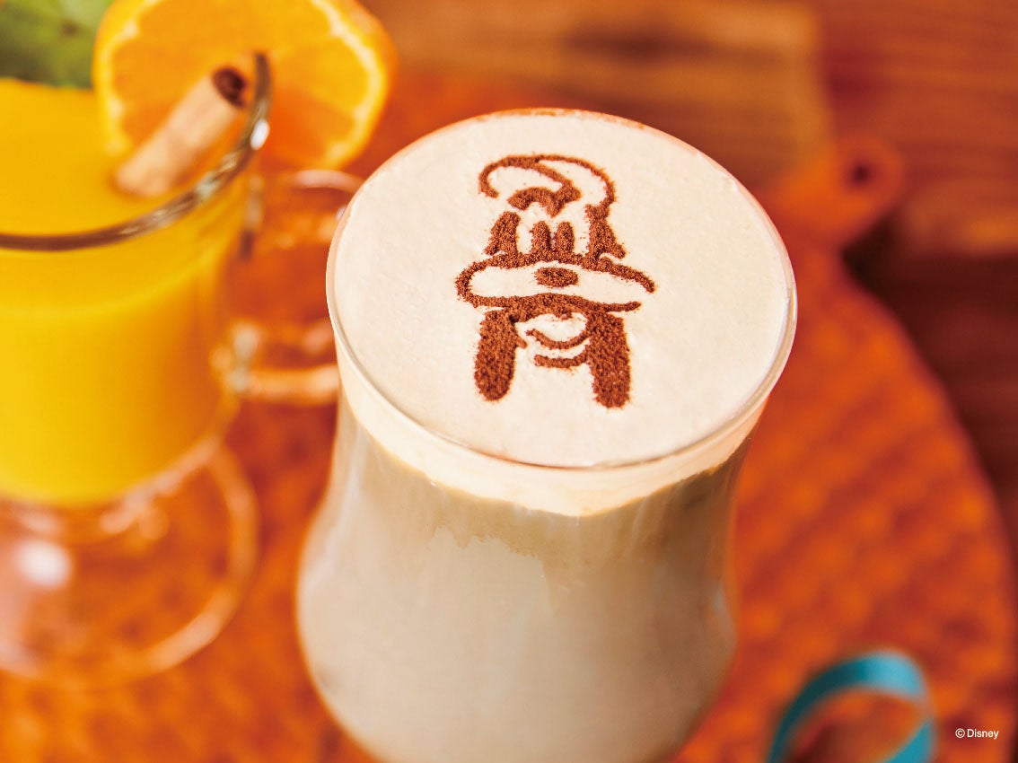 フォームドミルクには、ココアでできたグーフィーのフェイスアートが。