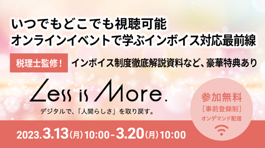 「請求QUICK」がインボイス対応最前線をテーマに、経理の業務改革をもたらすデジタルツール発掘イベント「Less is More.」に登壇