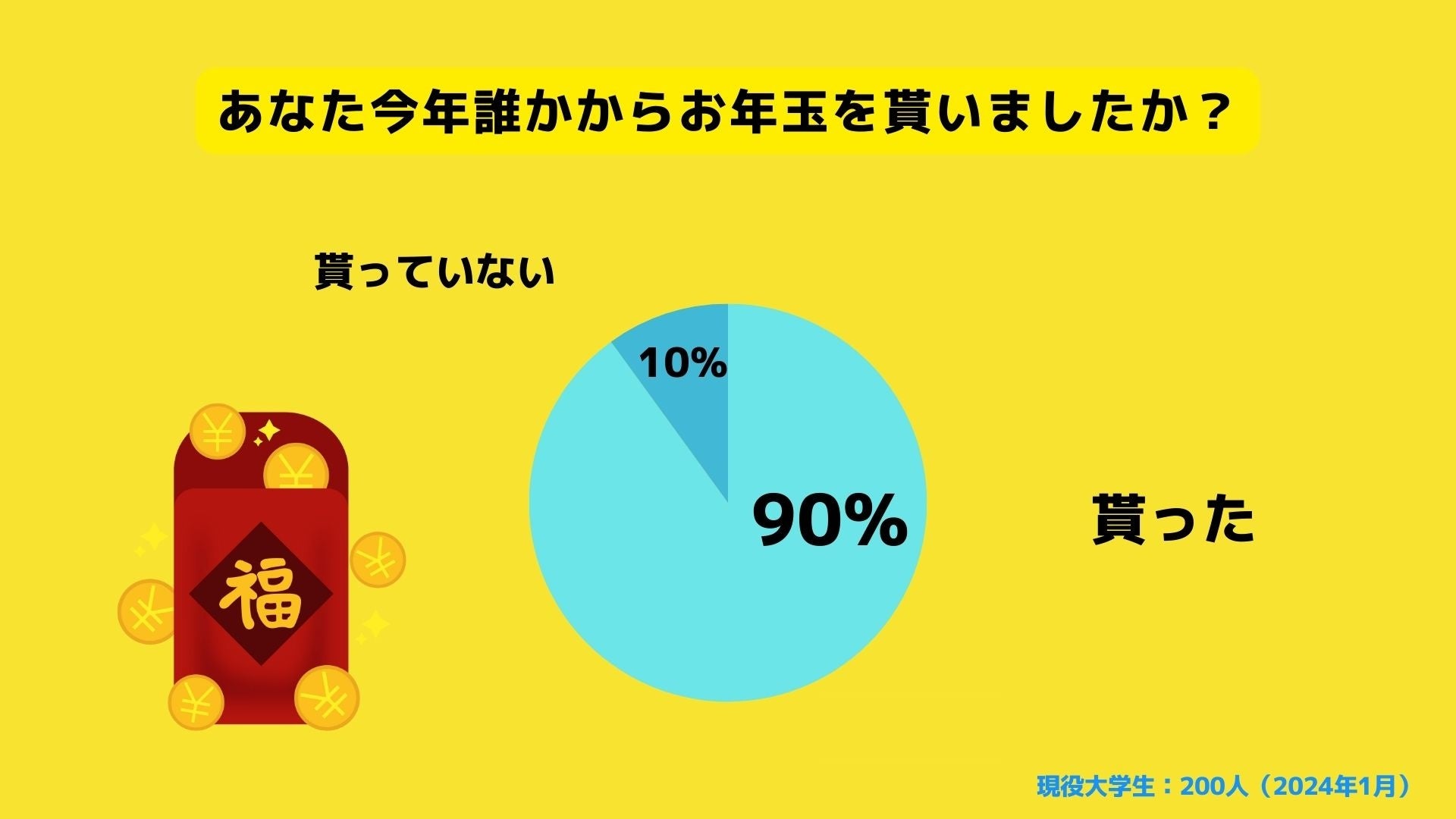 ■大学生の90%がお年玉を貰っていると回答。