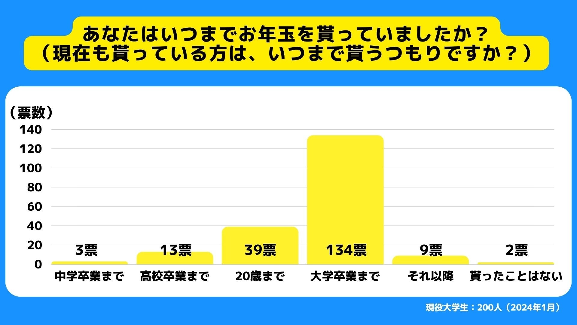 大学生の67%が大学卒業までお年玉を貰うつもりであると回答。