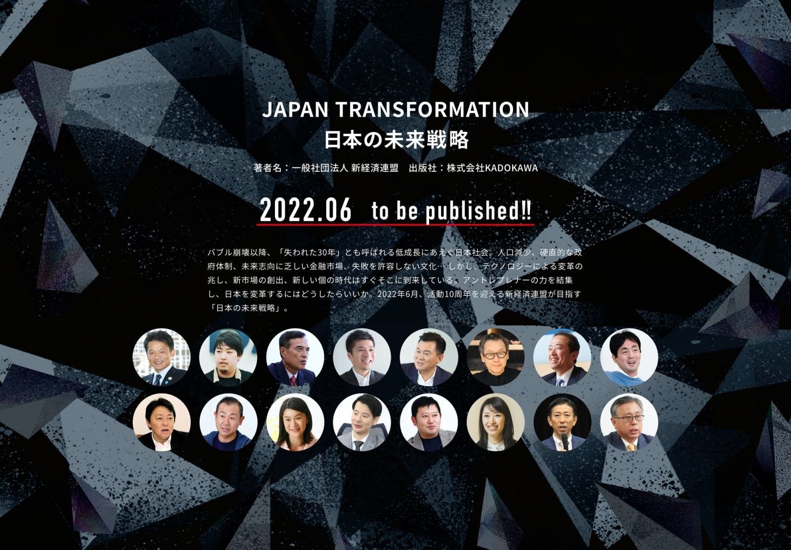 ・概要: バブル崩壊以降、「失われた30年」とも呼ばれる低成長にあえぐ日本社会。人口減少、硬直的な政府体制、未来志向に乏しい金融市場、失敗を許容しない文化… しかし、テクノロジーによる変革の兆し、新市場の創出、新しい個の時代はすぐそこに到来している。アントレプレナーの力を結集し、日本を変革するにはどうしたらいいか。2022年6月、活動10周年を迎える新経済連盟が提案する「日本の未来戦略」。