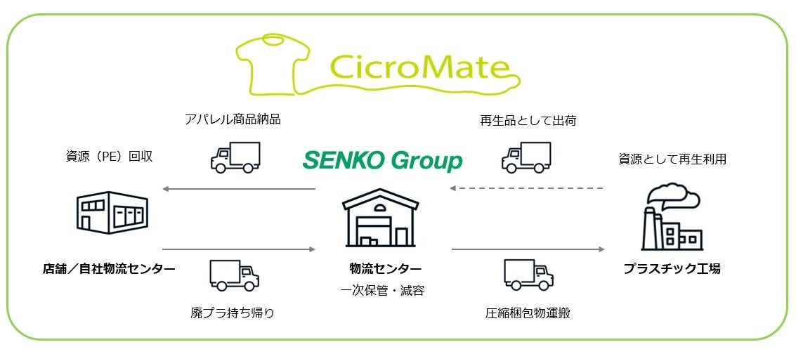 この度、最近注目されているプラスチックの再資源化の観点から、株式会社オンワード樫山において、物流を担うセンコーグループホールディングス株式会社(本社:東京都江東区 代表取締役社長:福田 泰久 以下「センコーグループ」)の輸送網を活用して効率的にプラスチックを回収し再生する資源循環プラットフォーム「CicroMate(サイクロメイト)」を、12月1日(金)より採用します。