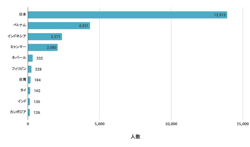 - 特定技能人材向けFacebookコミュニティー「特定技能ビザコミュニティー」、上位10国籍