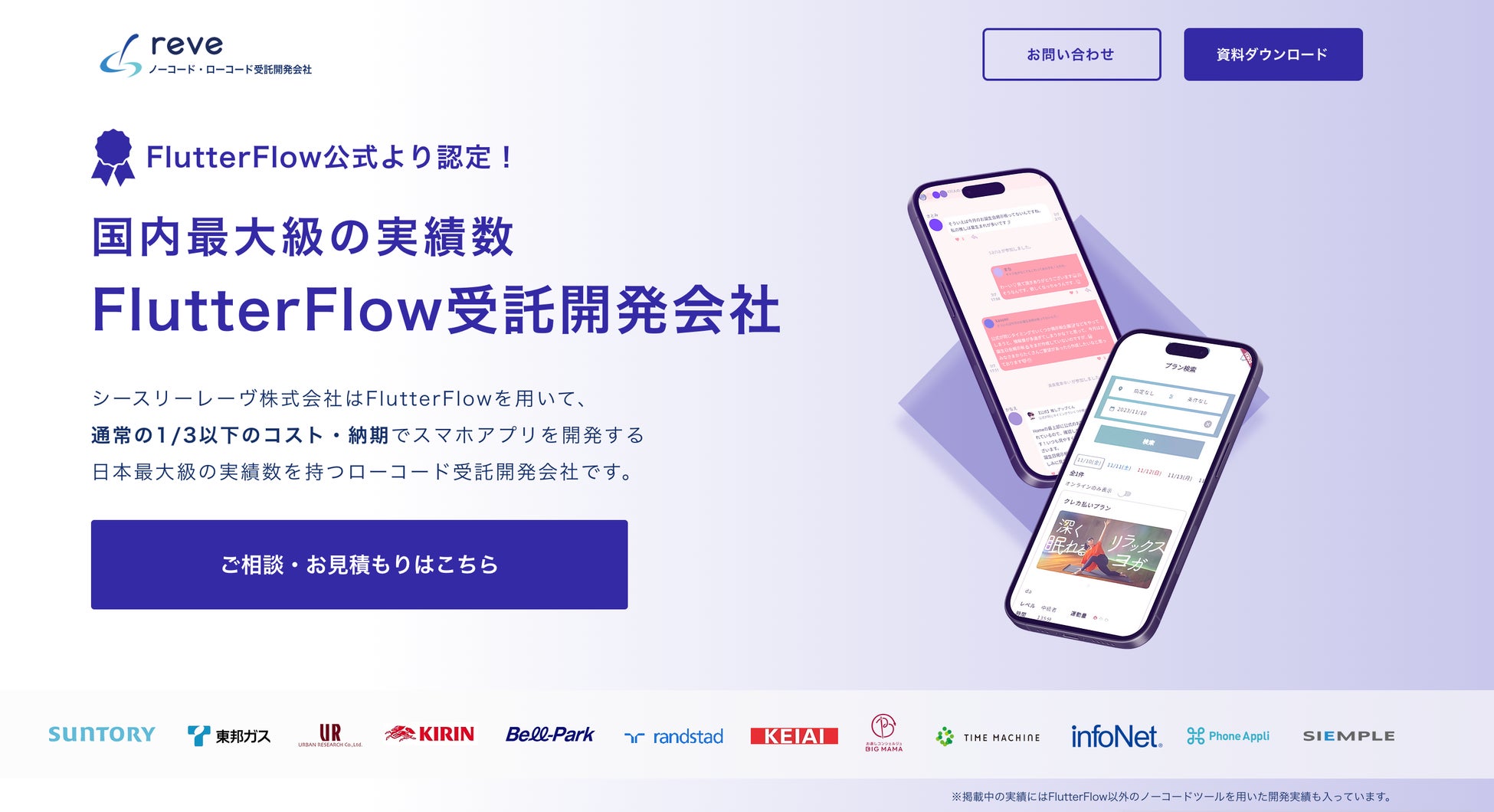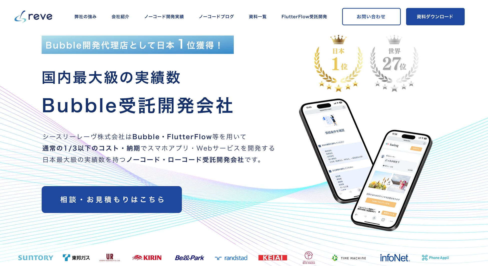シースリーレーヴ株式会社は、BubbleやFlutterFlowといったノーコード・ローコード開発ツールを用いた開発実績において、国内最大級を誇る受託開発会社です。