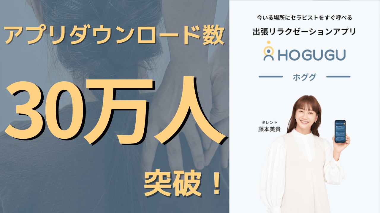 ダイレクトマッチング事業のトータルソリューションを提供するC2C Platform株式会社(本社:東京都千代田区、代表取締役:薛 悠司、村上 英夫、以下C2C社)が伴走支援する株式会社HOGUGUテクノロジーズ(本社:大阪府大阪市、代表取締役:花岡賢一、以下、HOGUGU社)は、ご自宅やホテルにリラクゼーションセラピストをすぐ呼べる出張リラグゼーションアプリ「HOGUGU(以下「ホググ」)」 のアプリダウンロードが30万人を突破したことをご報告いたします。またそれを記念して歌手、タレント、YouTuberとして幅広く活躍する藤本美貴さんを起用しました!
