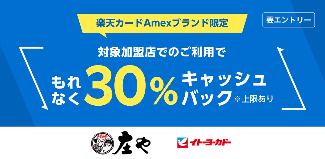 「アメリカン・エキスプレス・コネクト」の本カード限定の特典として、このたび大庄グループとイトーヨーカドーでもれなく30%キャッシュバックになるキャンペーン(注2)を開始いたします。「楽天カード」の100円で1ポイント「楽天ポイント」が貯まる(注3)サービスと合わせてキャッシュバックキャンペーンをお使いいただくことで、本カードを物価高でもお得にお買いものができるクレジットカードとしてご利用いただけます。