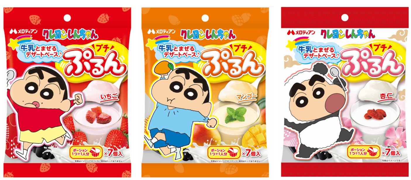 メロディアン株式会社(本社 大阪府八尾市、社長 中西優紀雄)は、大人気アニメ「クレヨンしんちゃん」とコラボした「プチぷるん」いちご・マンゴー・杏仁を新発売いたします。
