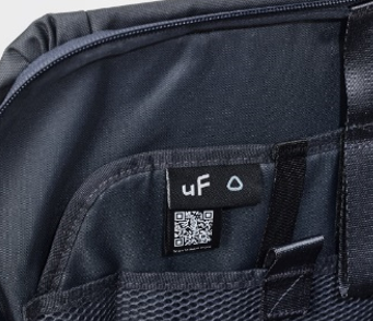 すべてのバッグにはQRコードタグをつけており、e.dye®と一般的な生地を比較し、水・化学薬品の使用量および