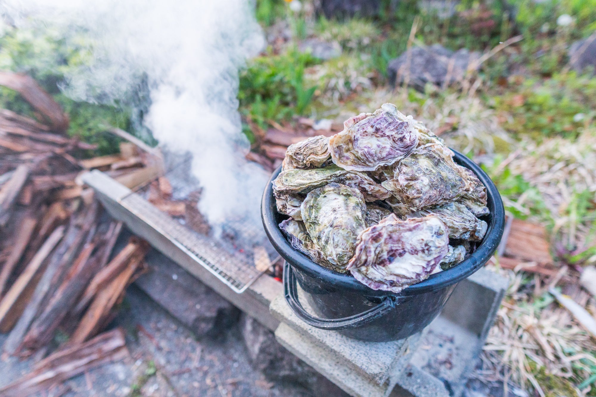 車中泊スポット到着後、利用者は地元漁師「河端水産」から殻付き牡蠣を受け取り、シェアハウス内のバーベキューコーナーやシェアキッチンを利用して、自身で焼く・蒸すなどして牡蠣を調理・堪能することができます。