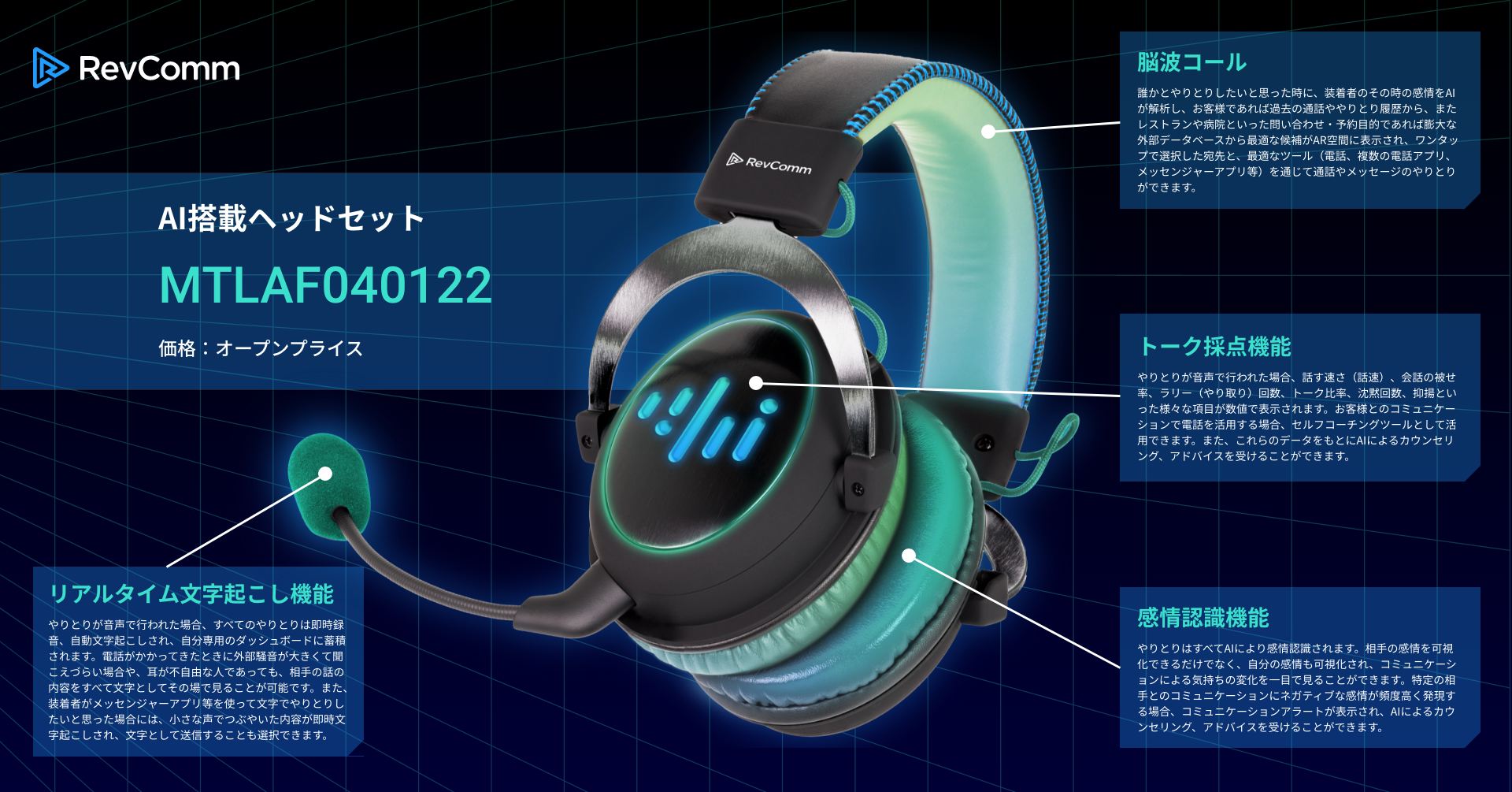 RevCommは、世界初、AIを搭載した最先端ヘッドセット「MTLAF040122」を発売します。