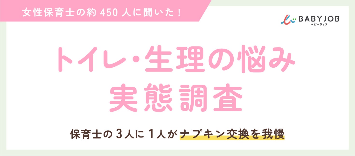 【女性保育士の約450人に聞いた、トイレ・生理の悩み実態調査】一般企業に比べ「ナプキンの交換を我慢している」割合が30倍、子どもと向き合う保育現場だからこその大変さが浮き彫りに