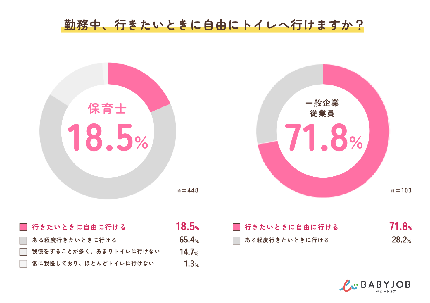 ③「自由にトイレへ行ける」と回答した保育士はたったの2割、一般企業と比較して3分の1という結果に