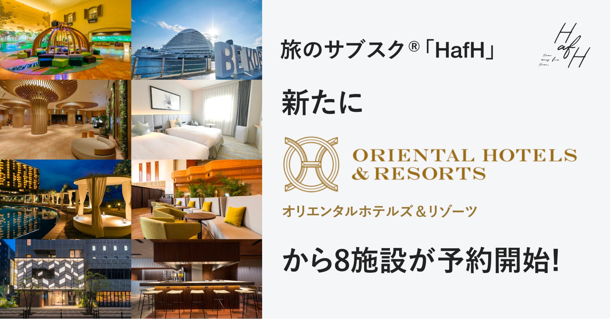 旅のサブスク®「HafH」、オリエンタルホテルズ&リゾーツの8施設が新たに利用可能に