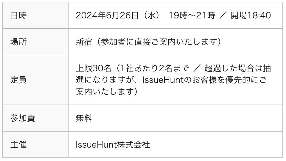 ・会社名:IssueHunt株式会社