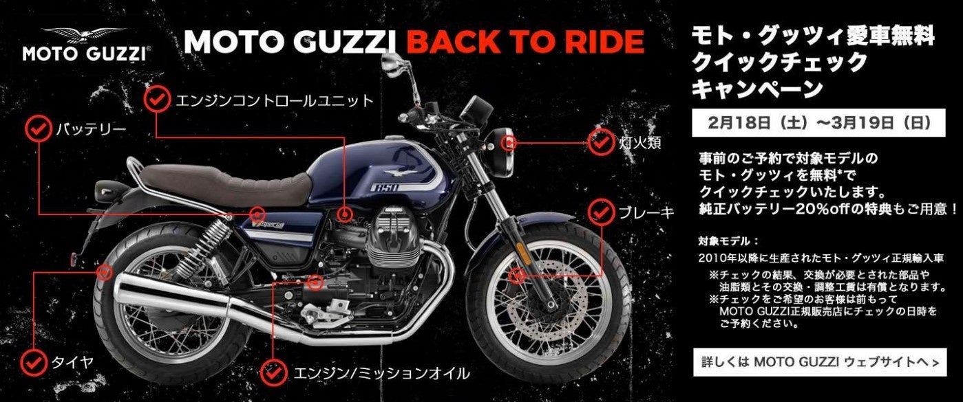 年 2 月 18 日(土)から 3 月 19 日(日)まで、お客様のモト・グッツィを無料で点検する『モト・グッツィ クイックチェ