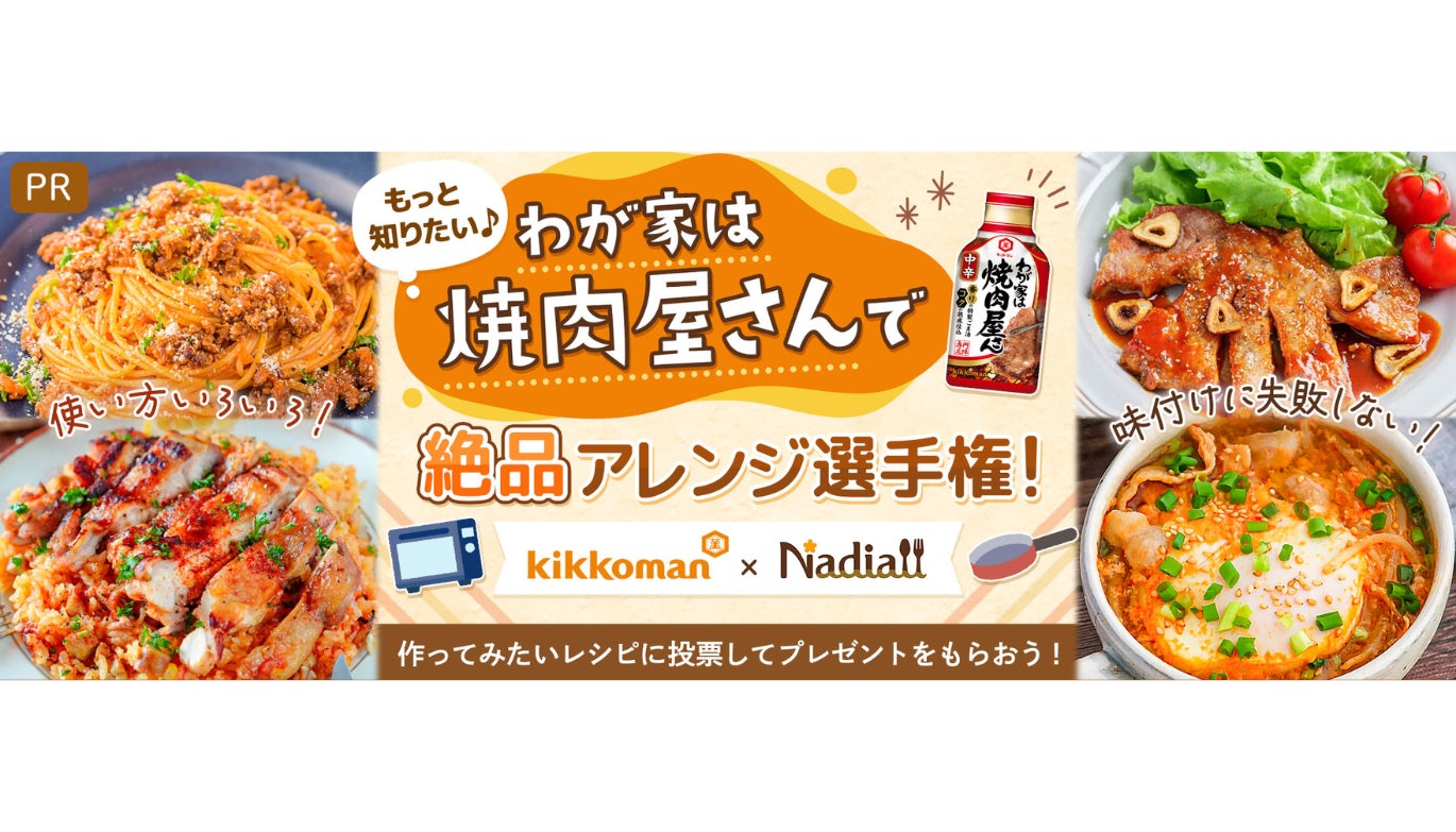 レシピサイト「Nadia」とキッコーマン食品株式会社がタイアップ!わが家は焼肉屋さんを使ったアレンジレシピコンテストを開催!