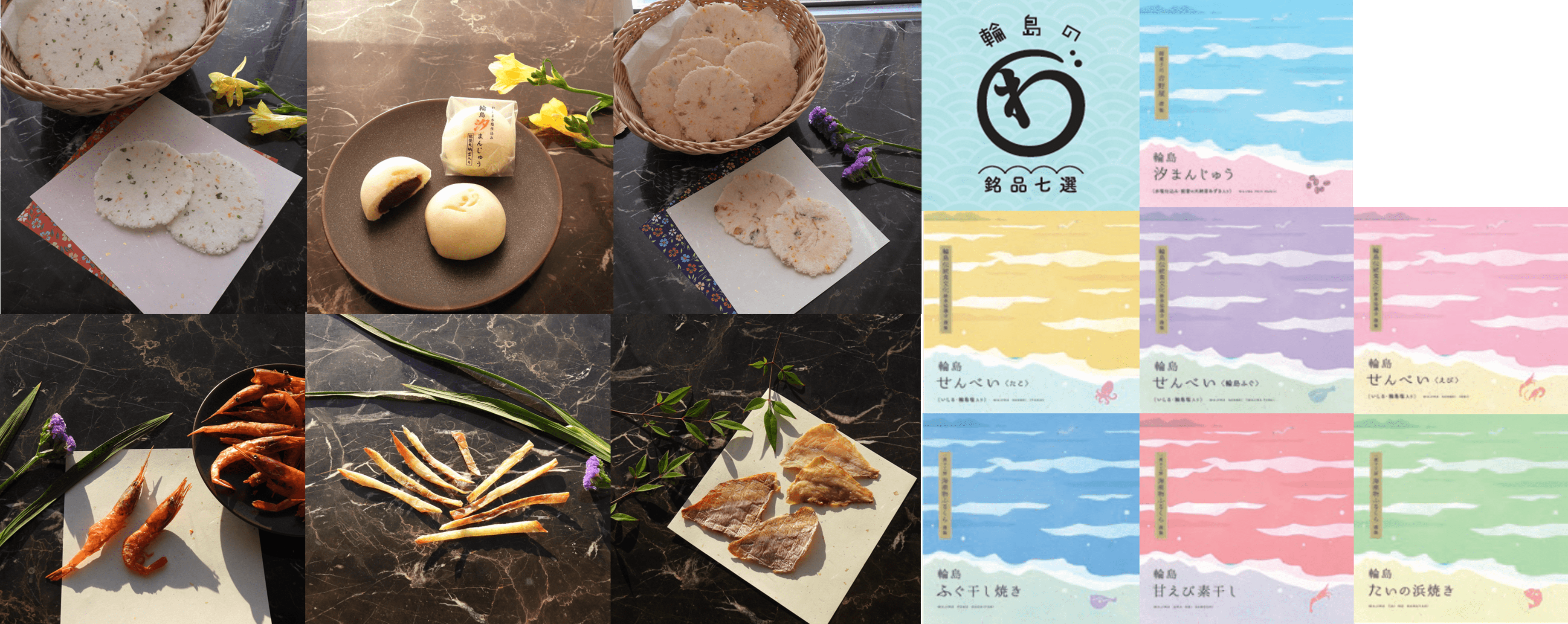 ②輪島商工会議所×せんべい3種: 輪島ふぐ、えび、たこ