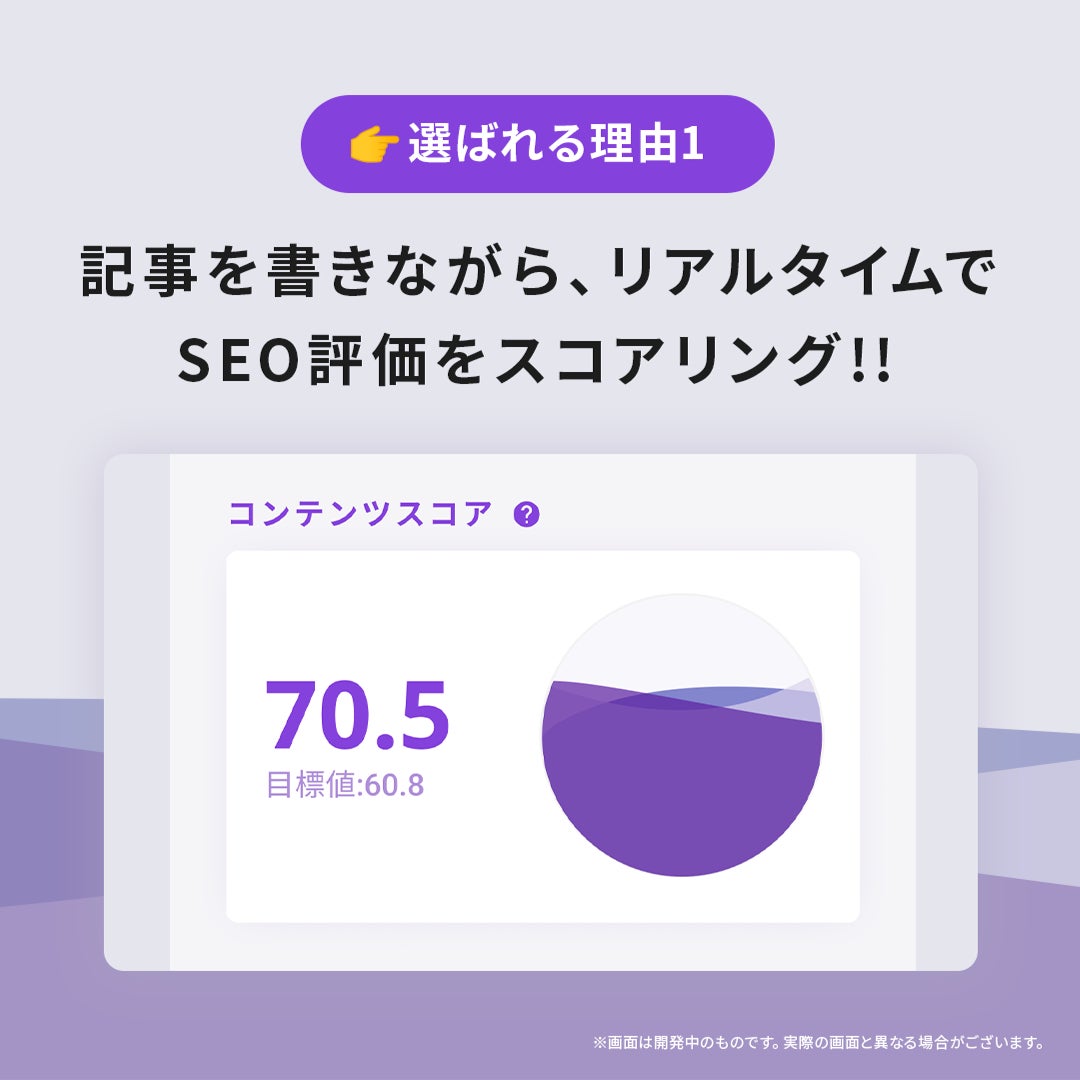 SEO対策における「コンテンツ」の品質を数値化し、初心者でも良質なコンテンツを作成できるSEOライティング支援サービスです。