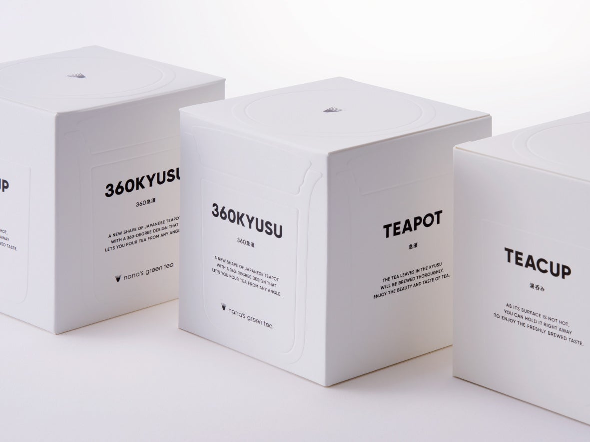 360KYUSUは、茶の楽しみ方に革新をもたらし、茶文化を世界に広げるためにデザインされました。伝統的な急須の知恵と現代的な機能や素材を融合し、日本だけでなく海外の方にもお茶文化に触れてもらうことを目指しました。ユニバーサルデザインの理念を取り入れたプロダクトデザインは、人・文化・環境を重視し、お茶を淹れる体験そのものをリデザインしています。プロダクトと共にパッケージデザインもシンプルな情報構成でわかりやすく、ロゴタイプとプロダクトのアウトラインをかたどったアイコニックなデザインです。