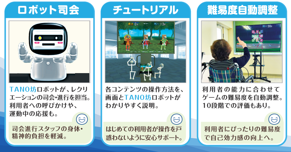 レクリエーションの準備・進行をロボットが補助(業務負担軽減)