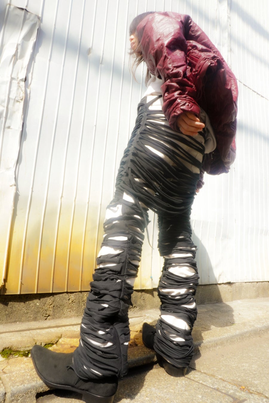 こちらもDIET BUTCHER のスキニーやスリムシルエットのデニムパンツやカーゴパンツを複数本解体して作り上げたアイテムとなっております。