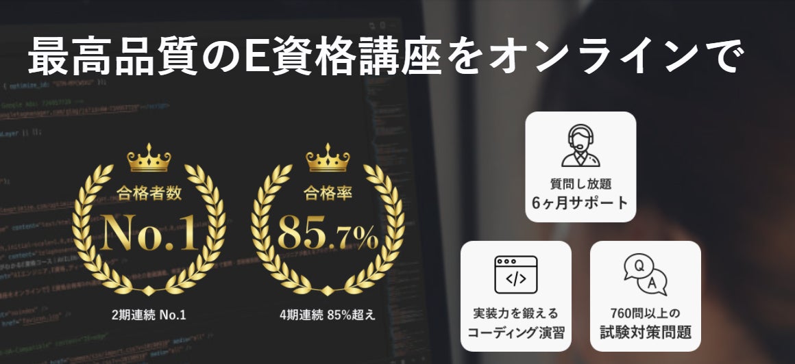 本コースの修了者のE資格合格率は4期連続で85%超、2期連続で合格者数No.1を達成しており、継続してAIエンジニア・データサイエンティストを目指す皆様をご支援して参りました。