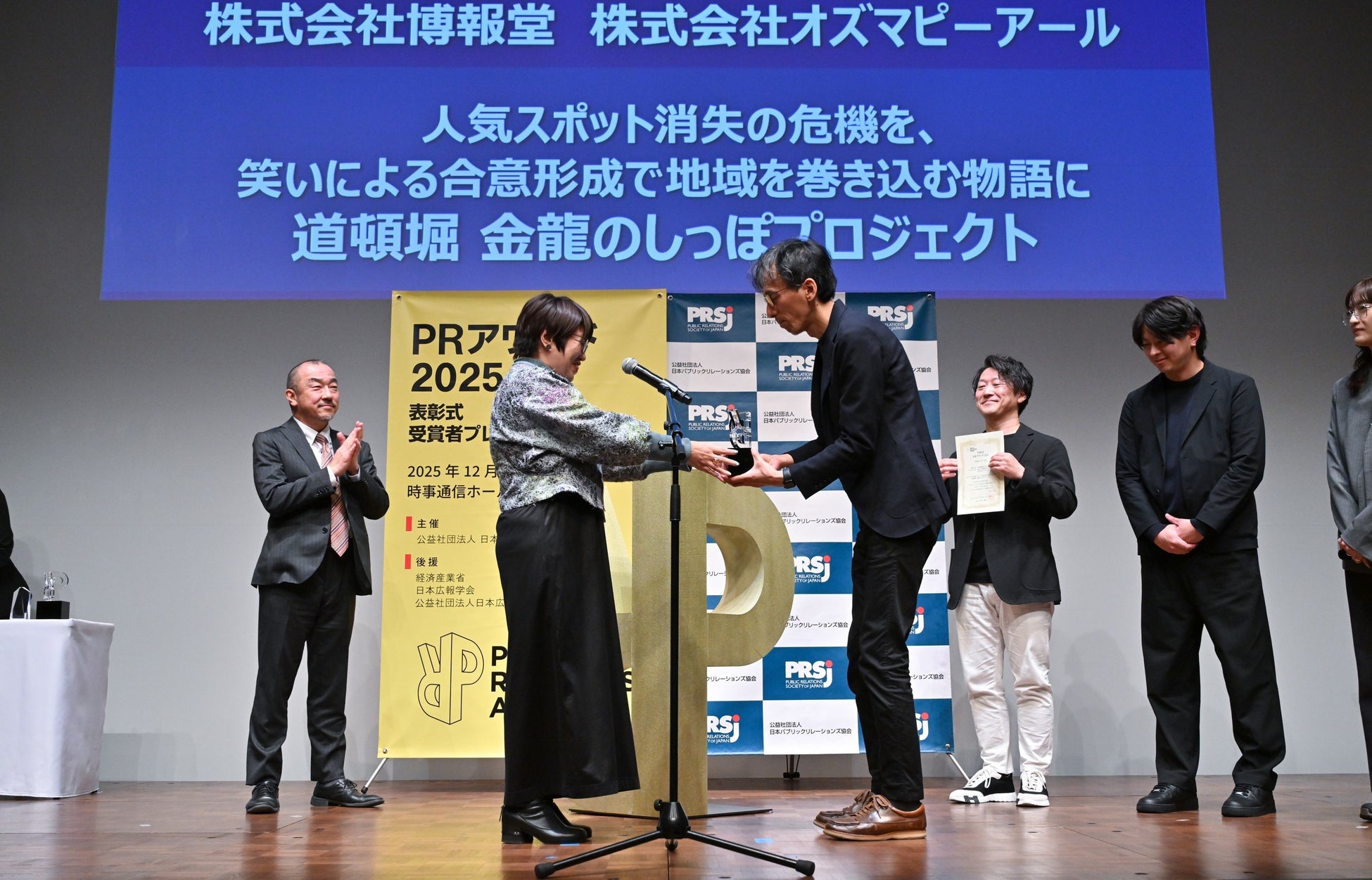 株式会社オズマピーアール(本社:東京都千代田区、代表取締役社長:中尾 敏弘)は、公益社団法人日本パブリックリレーションズ協会(略称:日本PR協会)が主催する「PRアワード2025」において、「人気スポット消失の危機を、笑いによる合意形成で地域を巻き込む物語に『道頓堀 金龍のしっぽプロジェクト』」がゴールドを受賞しました。