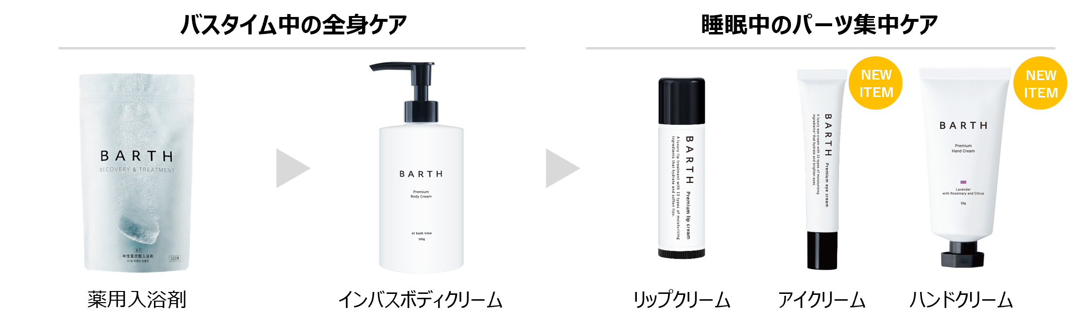 BARTHは、「薬用BARTH中性重炭酸入浴剤」をはじめ高い機能性を追求した商品を通じて、ワンランク上のナイトルーティンを提供いたします。