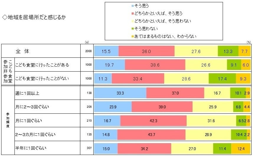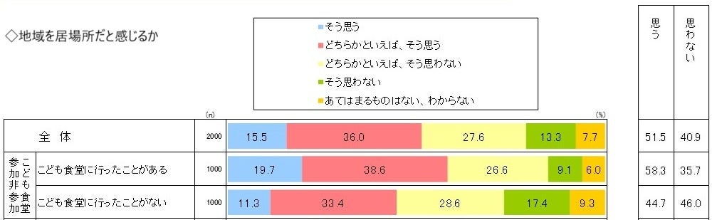(2)こども食堂の参加者は、地域やこども食堂を「居場所」と感じる傾向がある