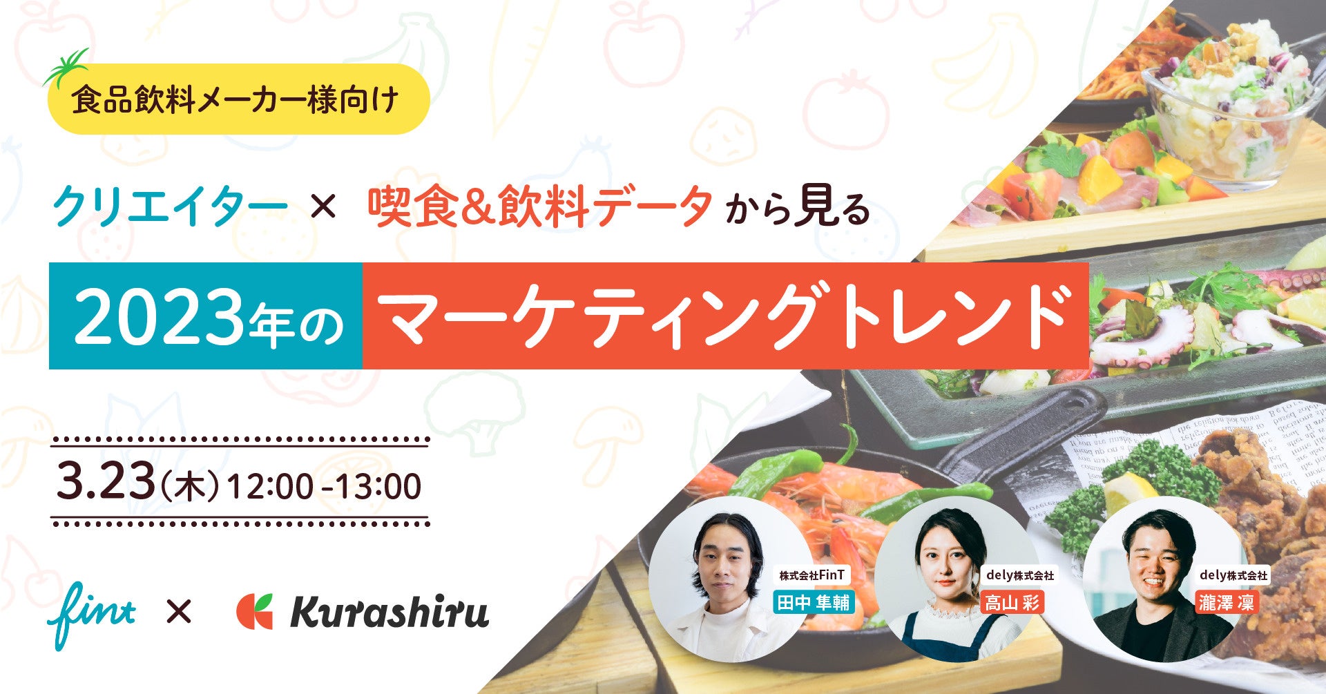 そこで、今回はSNSを起点にマーケティング支援を行う株式会社FinTと国内No.1レシピプラットフォーム「クラシル」を運営するdely株式会社と共催セミナーを実施する運びとなりました。