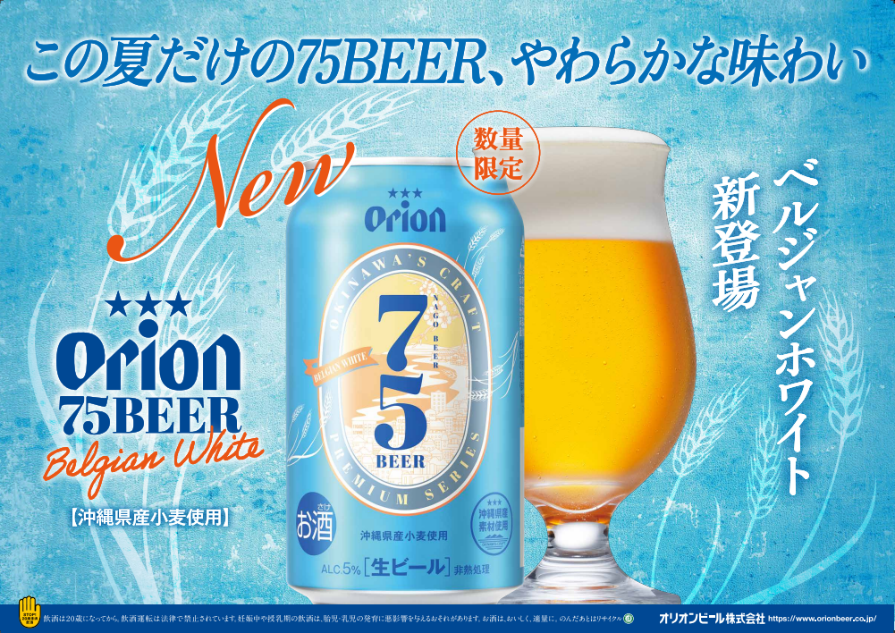 オリオンビール株式会社は、「オリオン 75BEER‐ベルジャンホワイト」を数量限定で7月5日(火)に発売します。