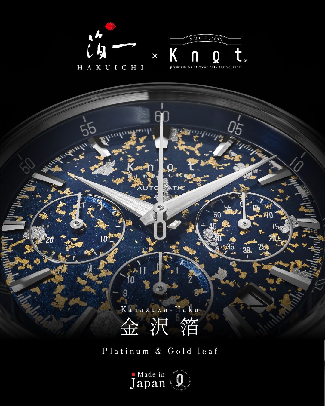 株式会社Knotは、カスタマイズウォッチブランドのMaker's Watch Knotより、匠の技を活かした“TAKUMI シリーズ”「金沢箔 AT-38SVPTBL / ATC-40SVPTBL」を発売します。金沢で400年以上受け継がれてきた伝統工芸「金沢箔」を文字盤にあしらい、日本らしさを現代の機械式時計に昇華させました。